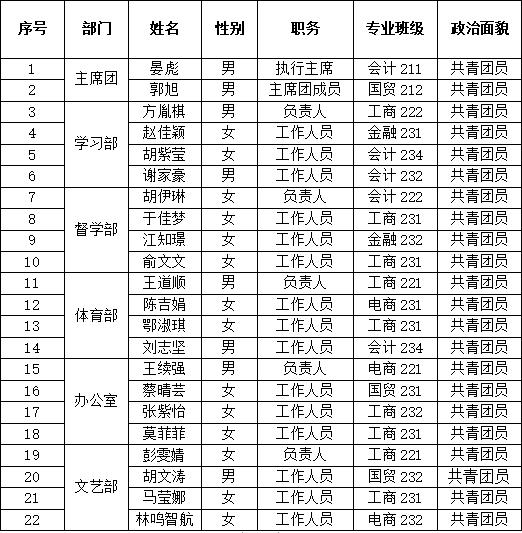 2023-2024学年经济管理系学生会组织工作机构及工作人员公示