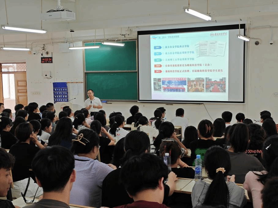 专业介绍会重点向全体新生介绍专业设置、专业特色、核心课程和就业前景等方面。在介绍过程中,老师们鼓励24级新生珍惜大学时光,在专业本领上苦下功夫,积极参与社会实践,努力让青春在赣科的四年时光中绽放光彩。