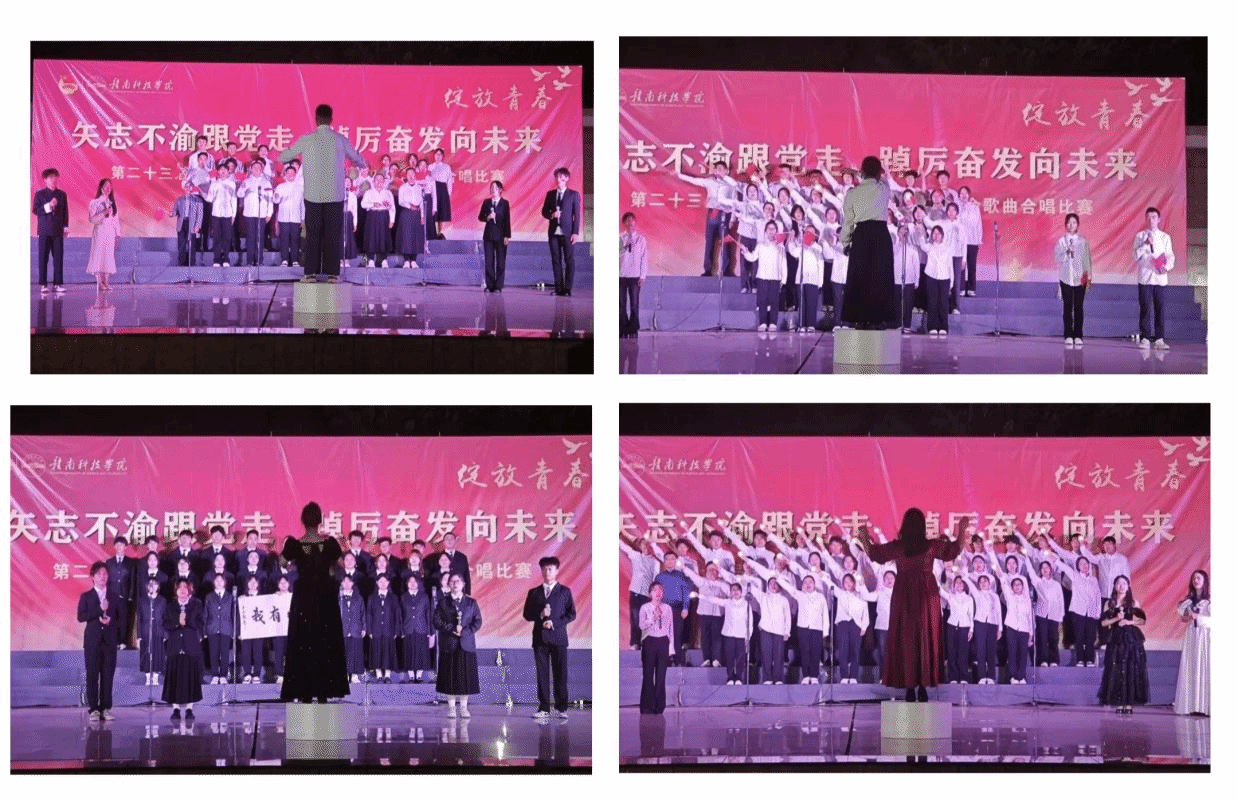 本次比赛各个班级认真对待,团结一心,展现出优秀的成果,给评委、观众带来了震撼的观感体验。经过激烈的角逐,在新生组比赛中,电商241《百年守望》荣获一等奖;工商241《我和我的祖国》、数字经济241《我爱你中国》荣获二等奖;国贸241《如愿》、电商242《紫荆花盛开》、金融241《有我》荣获三等奖。数字经济241刘梓涵获得最佳指挥,数字经济241徐静怡获得最佳领唱,会计242陈汇文获得最佳朗诵。在老生组比赛中,电商231《少年中国说》、会计231《我爱你中国》荣获一等奖;电商221《如愿》、国贸222《少年中国说》、会计221《我们都是追梦人》、电商222《我们都是追梦人》荣获二等奖;国贸231《我们的祖国》、会计233《国家》、会计232《我爱你中国》、金融232《少年中国说》、工商231《我爱你中国》、会计234《我爱你中国》荣获三等奖。老生组比赛中,汪晓锋获得最佳朗诵,韩雅静获得最佳指挥,廖延宇获得最佳领唱。
