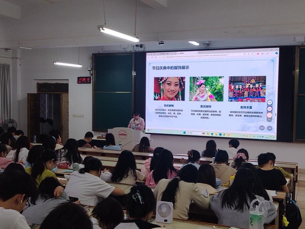 在少数民族文化宣讲中,辅导员张煜老师按照教学大纲系统地向学生传授民族理论、民族政策、民族历史等知识。同时,组织同学们自主介绍少数民族文化和民族特色。同学们积极参与,通过演讲活动深入学习民族文化知识,增强了对各民族文化的认同感和自豪感。同时此次活动引导学生讨论民族团结的重要性和如何在日常生活中维护民族团结。在团队活动方面,以轻松活泼的形式,促进了学生之间的交流与合作,增强了班级和团队的凝聚力。