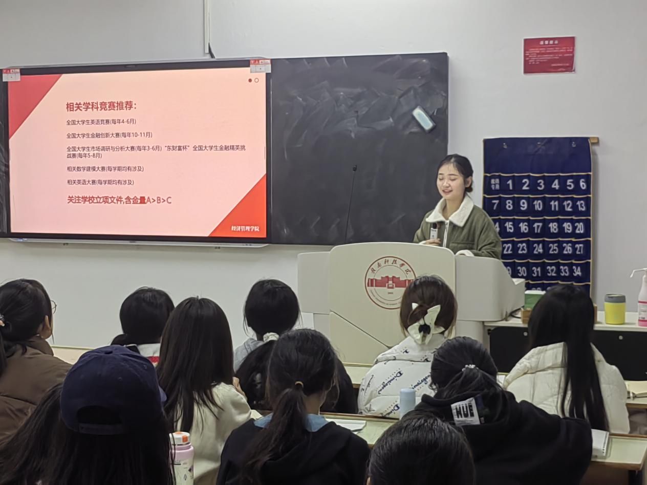 本网讯:为进一步激发同学们的学习热情,从优秀学生榜样中汲取力量,11月25日,国产精品❌❌❌蜜桃丝袜举办“榜样赣科”主题宣讲活动。本次活动邀请获得2024年国家奖学金的彭龄瑶同学为大家分享自己的学习经历与感悟,2024级国贸专业全体学生参加。
