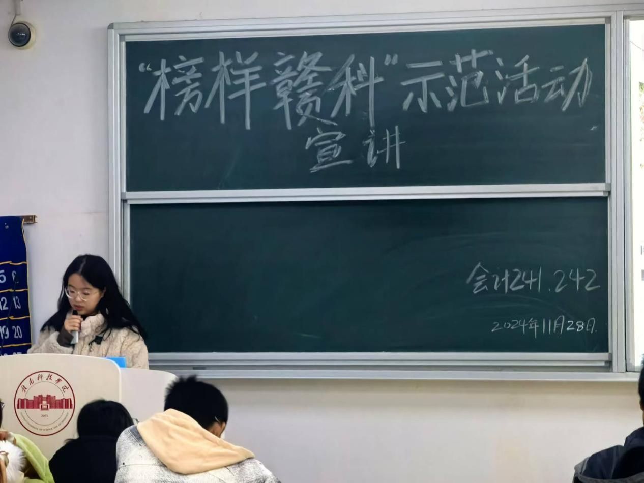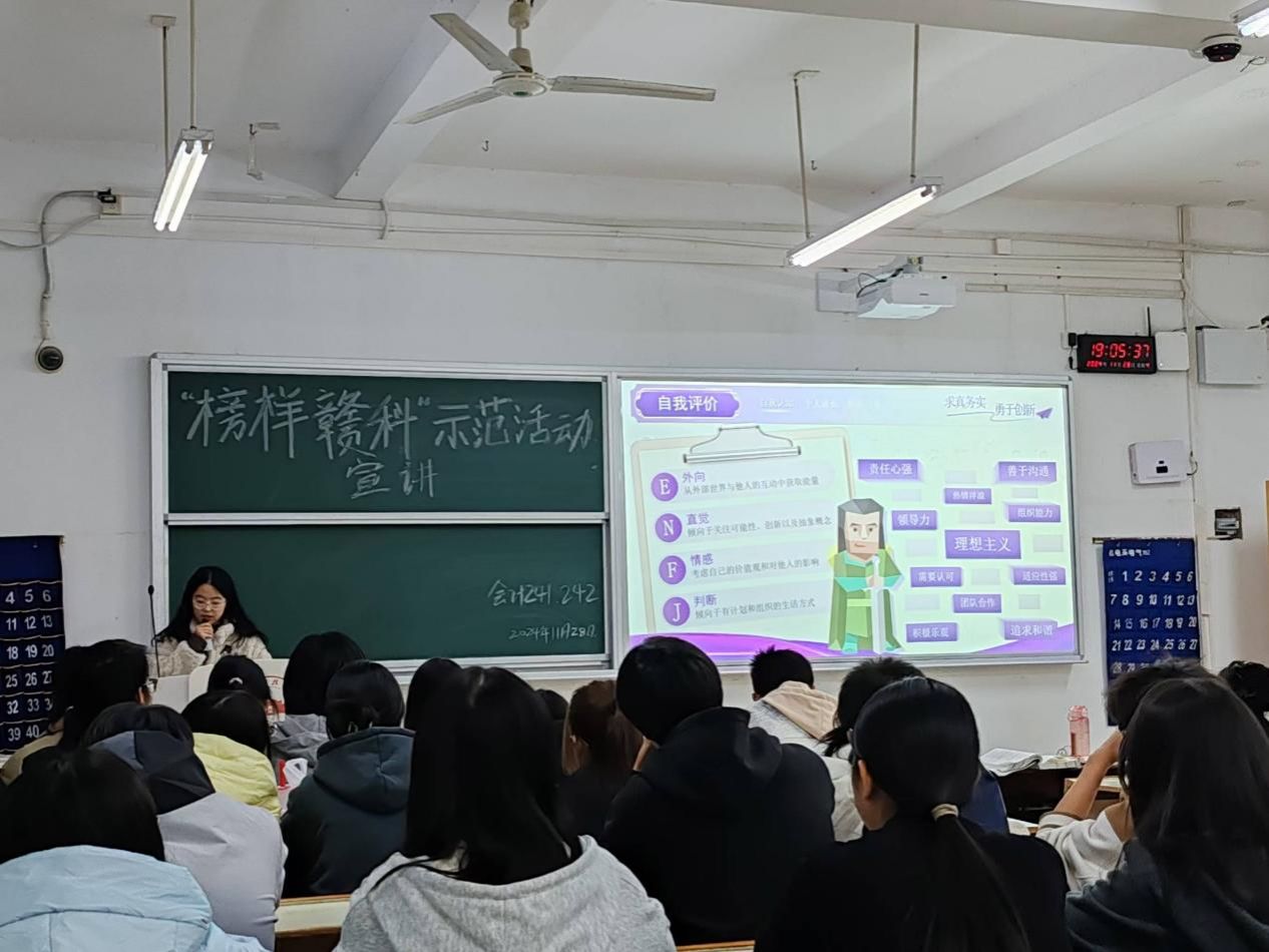 本网讯:为进一步激发同学们的学习热情,从优秀学生榜样中汲取力量,11月25日,国产精品❌❌❌蜜桃丝袜举办“榜样赣科”主题宣讲活动。本次活动邀请获得2024年国家奖学金的周雅鑫同学为大家分享自己的学习经历与感悟,2024级会计专业全体学生参加。