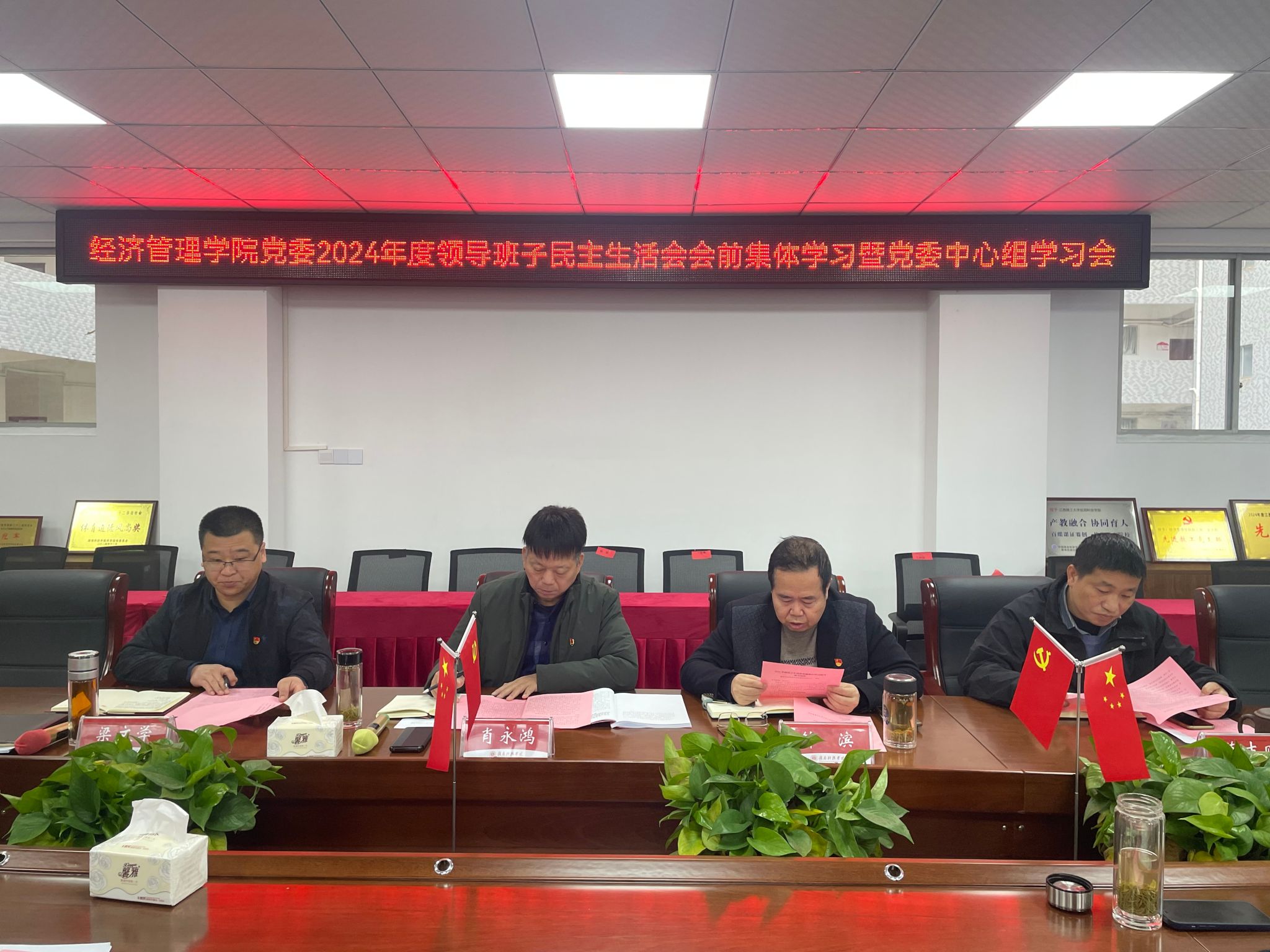 本网讯:为深入学习贯彻习近平新时代中国特色社会主义思想,巩固深化党纪学习教育成果,进一步统一思想、深化认识,为开好2024年度民主生活会筑牢思想根基和理论基础,2月25日,国产精品❌❌❌蜜桃丝袜在新民楼305会议室召开了2024年度领导班子民主生活会会前集体学习暨党委理论学习中心组学习会。国产精品❌❌❌蜜桃丝袜党委书记肖永鸿,学院党委委员、副院长钟滨,党委委员梁文学、葛志财、王波参会,各党支部书记列席会议。会议由肖永鸿主持。