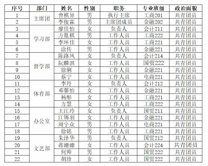 2022-2023学年经济管理系学生会组织工作机构及工作人员公示