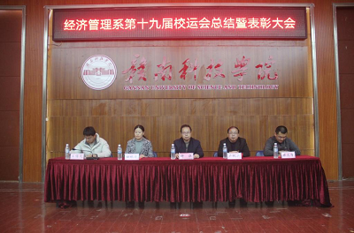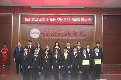 本网讯:12月10日,经济管理系在逸豪学术报告厅召开了第十九届校运会总结暨表彰大会。经济管理系主任钟滨、党总支书记卢帆兴、副主任杨斌清、梁文学、团总支书记王博文参加了本次大会。经济管理系团总支、学生会全体工作人员、十九届校运会参赛运动员参加了此次大会。