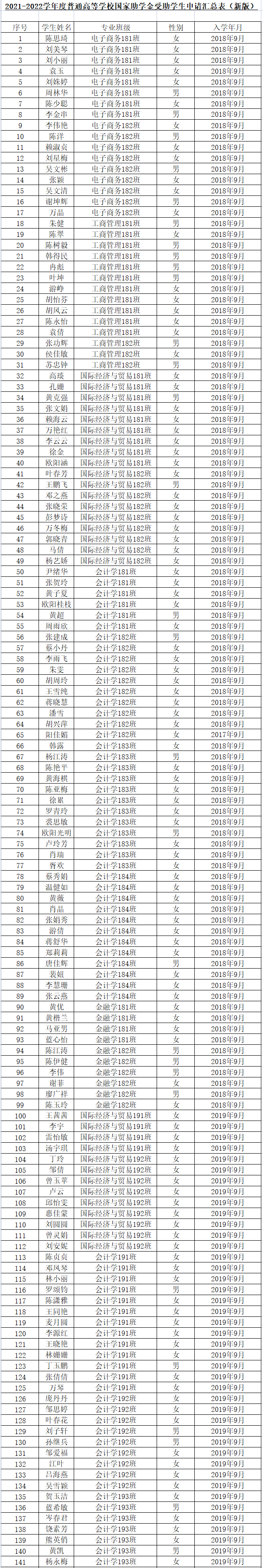 2021-2022学年度普通高等学校国家助学金受助学生申请汇总表(新版)