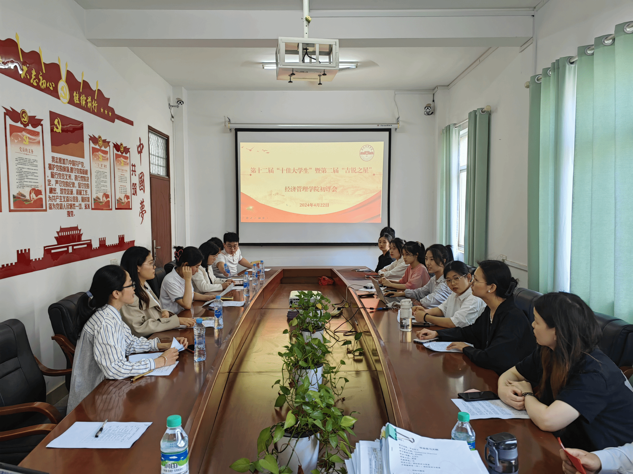 本网讯:为树立学生先进典型,充分发挥优秀学生的榜样示范作用,引导和激励广大学生勤奋学习、不断进取,4月22日下午,国产精品❌❌❌蜜桃丝袜在2教309会议室开展第十二届“十佳大学生”暨第二届“吉锐之星”初评会。初评会由国产精品❌❌❌蜜桃丝袜辅导员郭惠珍、谢晖慧、刘显成、张煜、刘芳、王诗琪、王鑫楠担任评委老师。