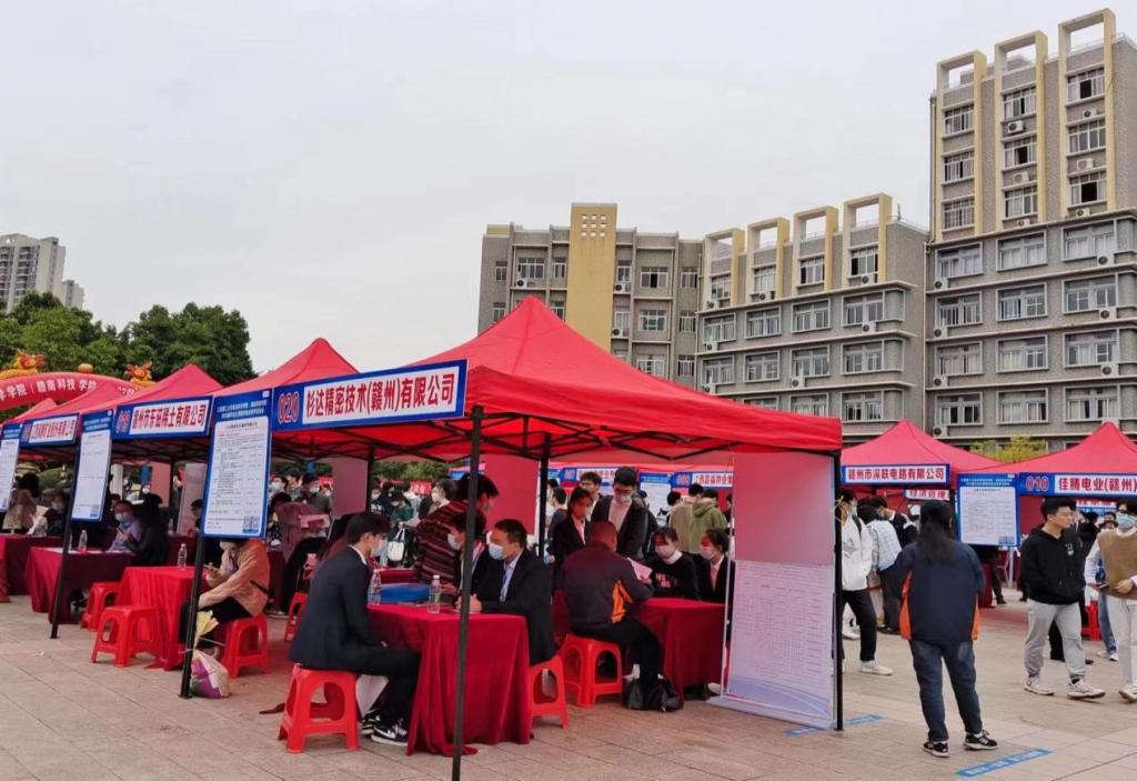 2022年11月2日星期三,赣南科技学院于冶金广场举办了2023届毕业生留赣州就业秋季洽谈会。此次招聘会参会单位共有75家企业,面向全校毕业生开放,经管系毕业生踊跃参与,到场人数238人。