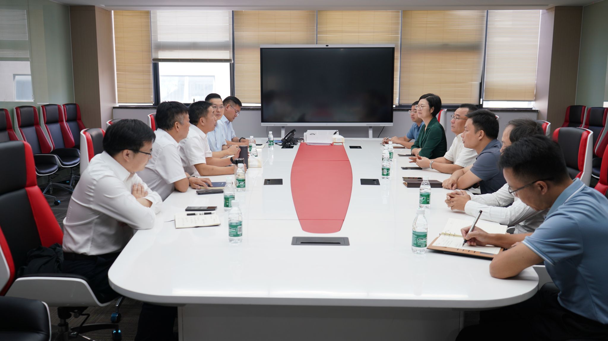 在赣州溢联科技有限公司,何锦龙参加了公司精益数字化咨询项目启动大会并发表讲话,会后与政府部门领导、企业负责人进行了座谈,介绍了学校的历史沿革、学科特色、毕业生情况以及精益管理研究院等方面内容,校政企多方围绕人才培养及企业精益数字化等展开深入交流。