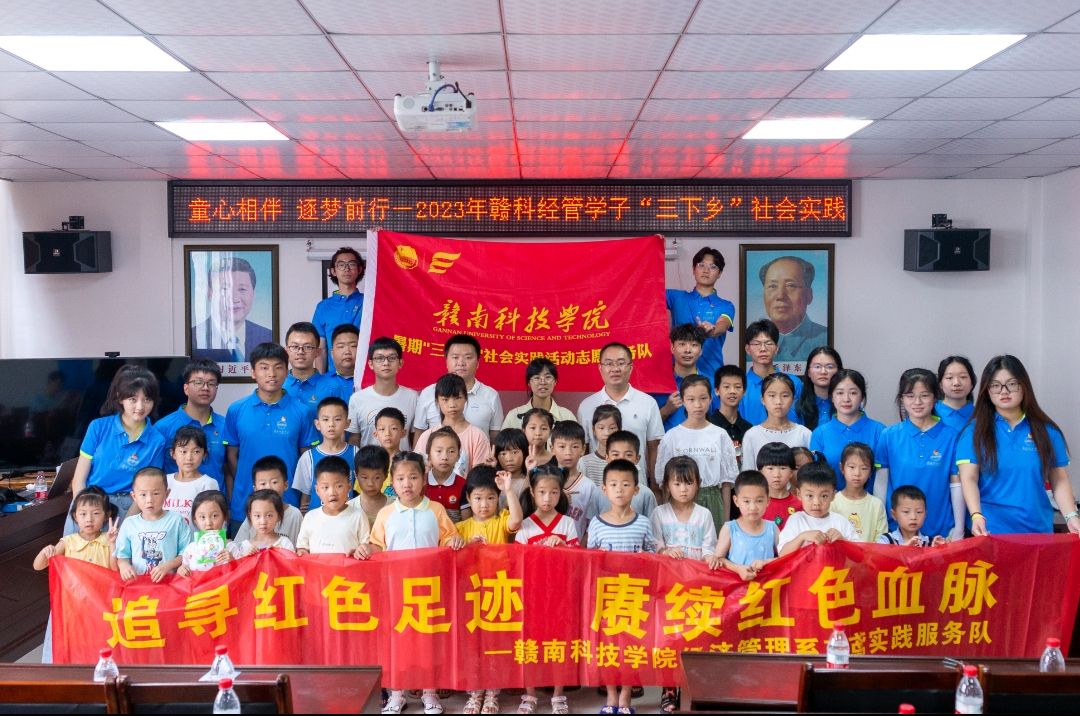中国青年网龙南8月10日电(通讯员 王萍)为围绕“学习二十大,永远跟党走,奋进新征程”主题,赣南科技学院经济管理系蓝鸢实践服务队于7月1日出发,前往江西省赣州市龙南市武当县童心港湾开展了相关活动。
